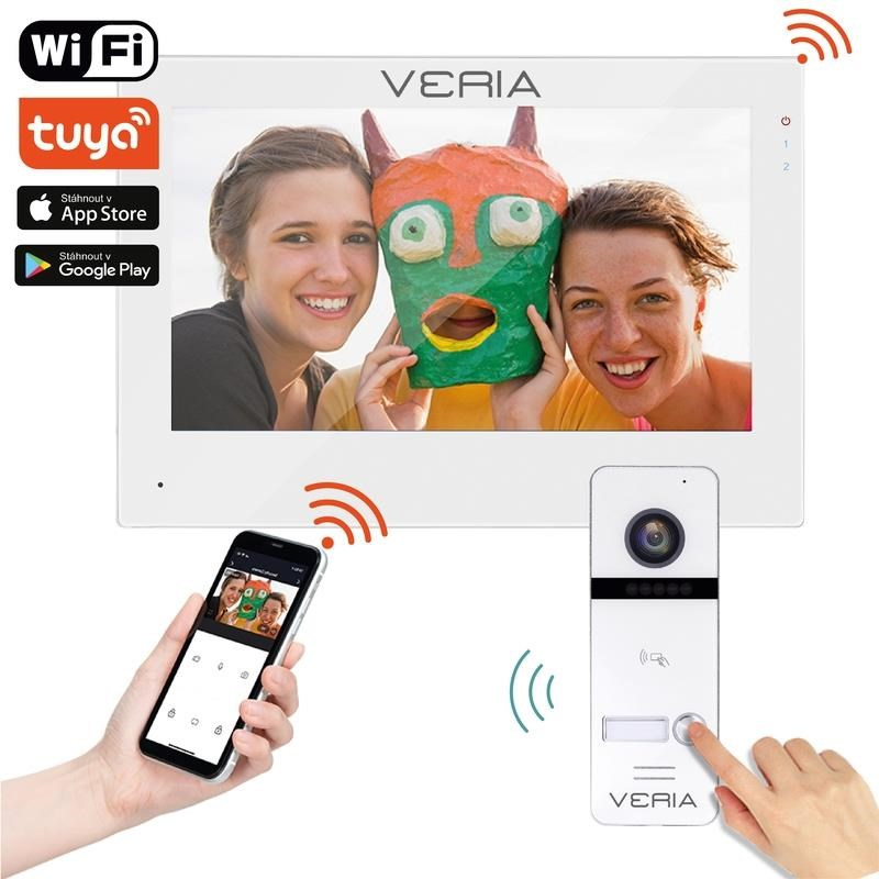 Akční nabídky na váš e-mailSada domácího barevného videotelefonu s dotykovým displejem o velikosti 7" s menu v českém jazyce, rozlišením videa Full HD, vybaveného Wi-Fi připojením s komunikací do aplikace Tuya v CZ lokalizaci dostupnou pro operační systém Android a iOS ke vzdálenému otevírání, ovládání a komunikaci s vaším návštěvníkem, čtečkou RFID čipů pro bezkontaktní otvírání dveří, branek nebo pojezdových bran, IR přísvitem a IR Cut filtrem pro noční vidění s jasným obrazem, záběrem kamery 120°, detekcí pohybu, záznamem na SD kartu s funkcí digitálního fotorámečku, vstupy pro připojení externích kamer a celou řadou dalších moderních funkcí.