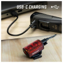 Světlo se zapíná dvojitým stisknutím. Velké tlačítko zapnutí lze snadno ovládat i v rukavicích. Tato funkce zajistí, že zadní světlo lze bez problémů schovat do kapsy dresu nebo do batohu, aniž by se nedopatřením rozsvítilo.