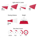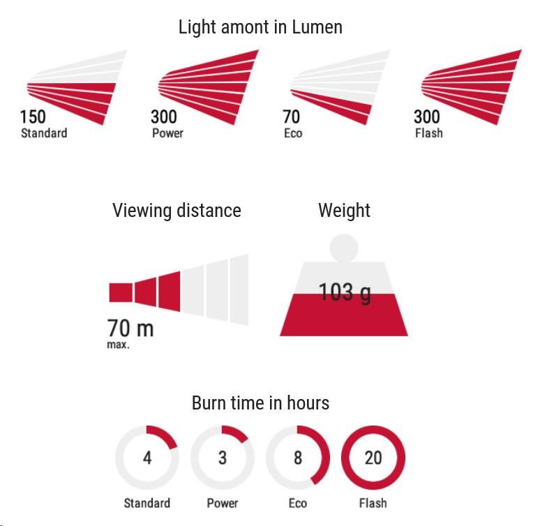 Kompaktní, velmi výkonné světlo pro každodenní použití Buster 300 s CREE LED diodou nabízí světelný výkon 300 lumenů a dosvit 70 metrů. Má integrovanou lithium-iontovou baterií s kapacitou 2000 mAh a microUSB nabíjení. Čtyři světelné režimy zajistí, že máte vždy k dispozici správné množství světla. Skvělá doba svícení, velká kapacita baterie, nízká váha, indikátor stavu baterie a čtyři světelné režimy, činí z tohoto světla ideálního průvodce tmou. Funkce světla Maximální světlený tok: 300 lumenů Dosvit: 70 m 4 světelné režimy: intenzivní 300 lm / standardní 150 lm / ekonomický 70 lm / blikání Doba svícení: 3 h intenzivní režim / 4 h standardní / 8 h ekonomický / 20 h blikání Doba nabíjení: 3 h Indikátor stavu baterie a nabíjení Horizontálně nastavitelný držák Ochrana proti neúmyslnému zapnutí: dvojité stisknutí pro zapnutí Montáž bez nářadí Integrované microUSB dobíjení Voděodolnost IPX4 ochrana proti stříkající vodě Hmotnost: 103 g 300 lumenů Buster 300 má svítivost 300 lumenů v širokém úhlu. CREE LED dioda poskytuje vynikající viditelnost při jízdě na kole ve tmě. Je vhodný nejen pro cyklistiku, ale i pro ostatní noční outdoorové aktivity. 4 světelné režimy Se čtyřmi různými režimy může být intenzita osvětlení optimálně přizpůsobena. Světlo má 3 režimy svícení: intenzivní 300 lm / standardní 150 lm / ekonomický 70 lm a režim blikání. Doba svícení až 8 hodin Světlo Buster 300 na jedno nabití dokáže svítit až 8 h v ekonomickém režimu nebo 20 h v režimu blikání. Doba svícení dle zvolených režimů: 3 h intenzivní / 4 h standardní / 8 h ekonomický / 20 h blikání. Kompaktní design Buster 300 je kombinací výkonné světelné intenzity světla a baterie v kompaktním a štíhlém designu. Perfektní interakce mezi funkčností a konstrukcí vede k všestrannému a praktickému využití světla. Integrované žebrování zajišťuje optimální odvod tepla proti přehřátí světla. Toto inteligentní řízení teploty pomáhá prodloužit životnost světelného zdroje. Lehké a kompaktní světlo Buster 300 s integrovanou baterií váží pouze 103 gramů a proto je velmi pohodlný také při nošení na helmě. Pomocí integrované baterie ve světle můžete zapomenout na obtěžující kabely k akumulátoru. Integrovaná USB dobíjecí lithium-iontová baterie Světlo a baterie jsou sloučeny do jednoho celku. Lithium-iontová baterie s kapacitou 2000 mAh je vybavena ochranou před nadměrným nabitím a nadměrným vybitím, je nabíjena pomocí microUSB kabelu. USB port je umístěn na zadní straně světla a je chráněn pružným silikonovým těsněním. Díky lithium-iontové technologii je ztráta kapacity baterie v neaktivním režimu mizivá. Dobíjení akumulátoru Akumulátor baterie lze nabíjet buď z počítače pomocí přibaleného microUSB kabelu nebo přímo z elektrické sítě. Doba nabíjení cca 3 hodiny. Indikátor stavu baterie a nabíjení Indikátor stavu baterie zobrazuje stav baterie jak při nabíjení, tak při svícení. Aktuální stav nabití akumulátoru zobrazuje indikátor integrovaný v tlačítku ON/OFF. Barva Led diody indikuje zbývající kapacitu baterie. Tlačítko ON/OFF Buster 300 se zapíná a vypíná pomocí centrálně umístěného, lehce zvýšeného tlačítka. Toto tlačítko může být snadno ovládáno i v rukavicích. Držák světla Buster 300 je připevněn k řidítkům pomocí jednoduše nastavitelného držáku, který lze otočit až o 360°. Konstrukce umožňuje rychlé upevnění nebo odstranění bez použití nářadí. Voděodolnost Buster 300 je voděodolný v souladu s mezinárodním standardem IPX4, který představuje „ochranu proti stříkající vodě ze všech směrů“. Je tedy vhodný pro použití bez ohledu na špatné počasí. Obsah balení Světlo Buster 300 Držák na řidítka Adaptér pro akční kameru MicroUSB nabíjecí kabel .