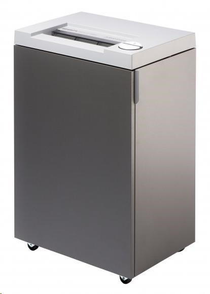 Komfortní obsluha. Výkonný skartovač se vstupní šířkou 240 mm pro intezivní využití. Nově integrována světelná indikace zátěže stroje. Kapacita skartace až 12 listů 70g/m2 papíru v řezu 2×15 mm. Popis: „SPS“ – patentované bezpečnostní a ochranné funkce: elektronicky řízená jistící klapka v místě vstupu, automatický zpětný chod při ucpání papírem a následné vypnutí, automatické vypnutí po naplnění odpadní nádoby, elektronická kontrola uzavření dvířek podstavy, dvoustupňové jištění motoru, úsporný režim „ZERO ENERGY“ (absolutní vypnutí odběru el. energie po 30 min ve stavu Stand-by). Vícefunkční přepínač „EASY-SWITCH“ s přehledným menu a barevnou světelnou signalizací provozu a indikací míry zátěže, automatická start/stop funkce pomocí optického senzoru, nože z tvrzené speciální oceli odolné vůči kancelářským sponkám a kreditním kartám, výkonný motor 390 W, vysoce kvalitní dřevěná skříňka (objem 50L) s odolným kováním a kolečky pro pojezd, mechanicky odolný snadno uchopitelný plastový odpadní koš objemu 35 L, vyrobeno v Německu. Rozměry (V x Š x H): 635×395×291 mm. Hmotnost: 21 kg..