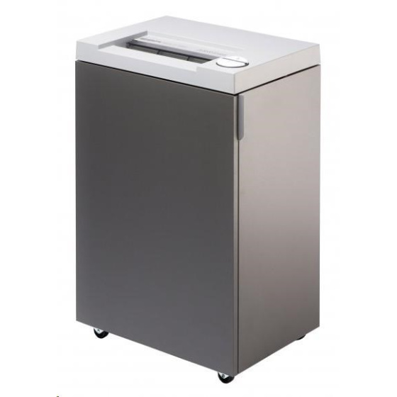 Komfortní obsluha. Výkonný skartovač se vstupní šířkou 240 mm pro intezivní využití. Nově integrována světelná indikace zátěže stroje. Kapacita skartace až 15 listů 70g/m2 papíru v řezu 4×40 mm. Popis: „SPS“ – patentované bezpečnostní a ochranné funkce: elektronicky řízená jistící klapka v místě vstupu, automatický zpětný chod při ucpání papírem a následné vypnutí, automatické vypnutí po naplnění odpadní nádoby, elektronická kontrola uzavření dvířek podstavy, dvoustupňové jištění motoru, úsporný režim „ZERO ENERGY“ (absolutní vypnutí odběru el. energie po 30 min ve stavu Stand-by). Vícefunkční přepínač „EASY-SWITCH“ s přehledným menu a barevnou světelnou signalizací provozu a indikací míry zátěže, automatická start/stop funkce pomocí optického senzoru, nože z tvrzené speciální oceli odolné vůči kancelářským sponkám a kreditním kartám, výkonný motor 390 W, vysoce kvalitní dřevěná skříňka (objem 50L) s odolným kováním a kolečky pro pojezd, mechanicky odolný snadno uchopitelný plastový odpadní koš objemu 35 L, vyrobeno v Německu. Rozměry (V x Š x H): 635×395×291 mm. Hmotnost: 21 kg..