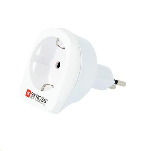 cestovní adaptér s uzemněním, max. 10A pro obyvatele Evropy navštěvující Švýcarsko Schuko uzemnění zásuvky - funkční pro univerzální vidlice lze použít i spotřebiče s 2-kolíkovou šňůrou nová bezpečnější konstrukce ochranný límec pro zajištění bezpečného zasunutí/vysunutí vidlice dětské pojistky švýcarská kvalita a design barva: bílá.