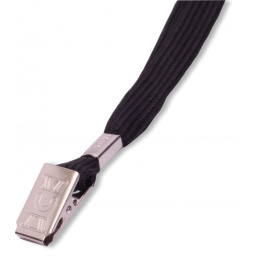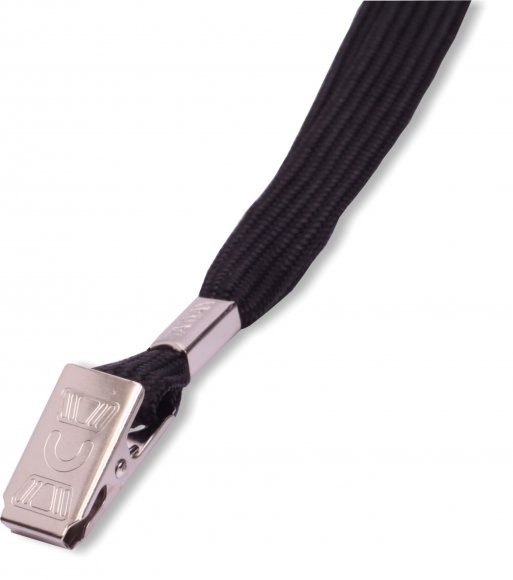 Šňůrka na krk s klipsem pro uchycení visačky. Lze použít na visačku s vyděrovaným podélným otvorem nebo se závěsem. Šířka 10 mm, délka 90 cm..