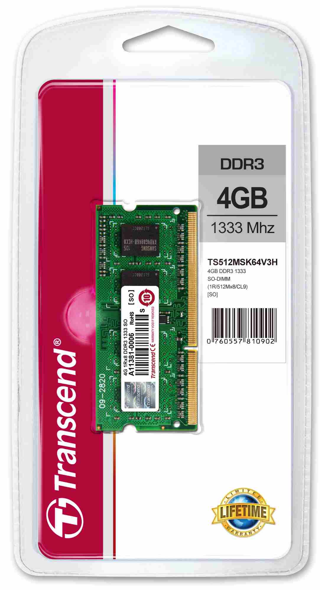 Popis TRANSCEND SODIMM DDR3 4GB 1333MHz 1Rx8 CL9