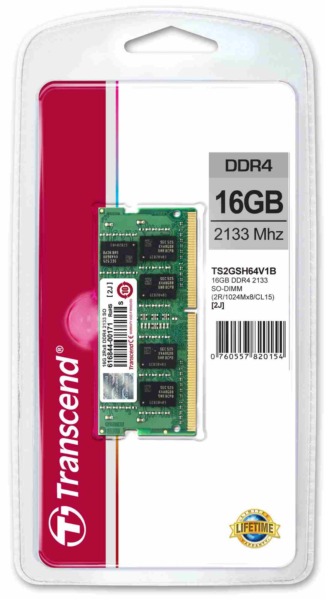 Popis TRANSCEND SODIMM DDR4 16GB 2133MHz 2Rx8 CL15 Retail