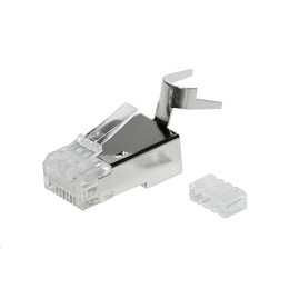Akční nabídky na váš e-mailTyto stíněné konektory Solarix RJ45 8p8c s vložkou jsou určeny pro kabely drát kategorie 6A a kategorie 7. Konektory jsou speciálně uzpůsobeny tak, aby jej bylo možné pohodlně nakrimpovat na kabely se silnějšími vodiči (až do průměru 0,57 mm) a silnější PE izolací (až do průměru 1,50 mm). Maximální tloušťka kabelu může být až 8,00 mm. Kontakty těchto konektorů Solarix kategorie 6A jsou kryty 50 µ zlata. Ke krimpování těchto kontektorů prosím použijte kleště HT-N3. Ke konektorům lze pak dokoupit ochrany v šedé barvě RAL 7035. Tyto konektory Solarix bez problémů splňují všechny požadavky definované v mezinárodních standardech ANSI/TIA 568, ISO/IEC 11801 a EN 50173 pro kategorii 6A a třídu vedení Class EA, včetně všech nejnovějších dodatků.