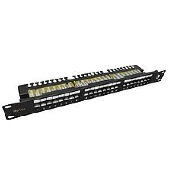 Akční nabídky na váš e-mailPatch panel Solarix SX24L-6-UTP-BK-N je 19“ nestíněný panel kategorie 6 osazený 24 porty RJ45. Součástí těla tohoto panelu je vyvazovací lišta, která slouží k pevnému uchycení kabelů. Instalační kabel se na tomto panelu zakončuje do duální IDC svorkovnice typu 110/Krone – tj. k zařezání lze použít nástroj typu 110 i Krone. Svorkovnice panelu je označena podle standardu T568A i T568B. Stejně jako všechny ostatní komponenty strukturované kabeláže Solarix je i tento panel vyroben tak, aby poskytoval velmi dobrou funkčnost a vysokou spolehlivost. Tento patch panel splňuje požadavky na komponenty kategorie 6 a třídy vedení Class E, které jsou definovány ve standardech ANSI/TIA 568, ISO/IEC 11801 a EN 50173, a to včetně všech nejnovějších dodatků. Barva patch panelu je černá; velikost v datovém rozvaděči je 1U. Součástí balení je 4 x M6 montážní sada, a 24 x vyvazovací pásek. Tento nový patch panel Solarix nahrazuje panel s označením SX24L-6-UTP-BK.