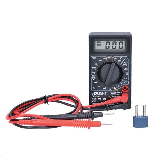 Popis Solight multimetr, max. AC 500V, max. DC 500V / 10A, test diody, bzučák