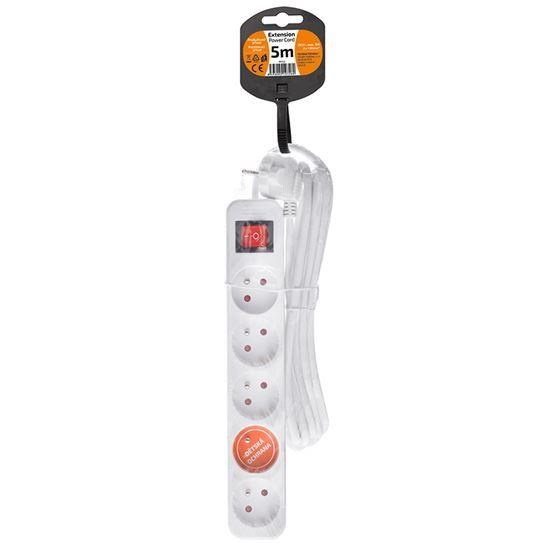 Praktický bílý prodlužovací kabel s délkou 5 metrů a pěti zásuvkami umožní přivést elektrickou energii tam, kde není k dispozici pevná zásuvka. Podsvětlený vypínač umožňuje pohodlné ovládání všech připojených zařízení. Ideální pro domácí i kancelářské využití.