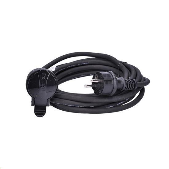 Odolný gumový kabel typu s průřezem vodičů 1,5 mm2 odolává střednímu mechanickému namáhání i zhoršeným klimatickým podmínkám. Můžete se na něj spolehnout všude tam, kde klasický PVC kabel už nestačí. Samozavírací víčko chrání zásuvku před vodou a prachem.