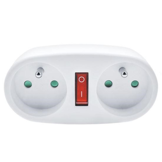 Solight rozbočka, 2 x 10A, bílá, vypínač