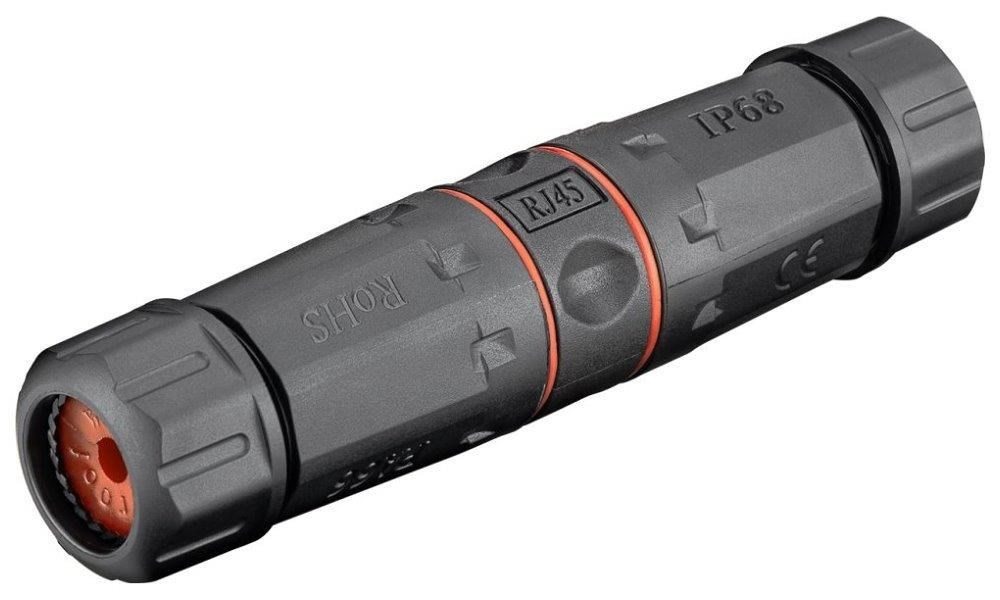Propojovací stíněná voděodolná spojka pro rozvody Cat5e/6/6a. Určeno pro prodloužení segmentů okonektorovaných kabelů. Vhodná pomůcka pro exteriérové instalace aktivních outdoor prvků, a jejich snadnou montáž a demontáž v hůře přístupných místech.