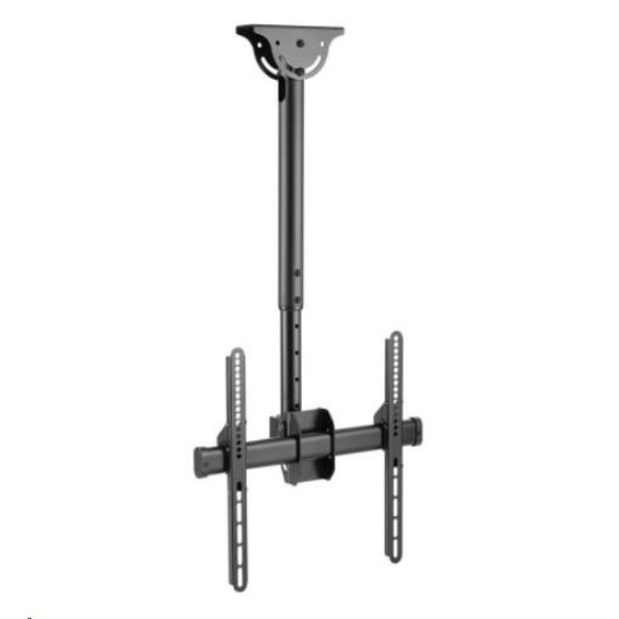 Stropní držák televize Fiber FN-T400 Stropní držák na Tv 32-60" plně polohovatelný, TOP kvalita Držák pro zavěšení televizorů a monitorů na stropní konstrukce. Držák je plně nastavitelný: otáčení do stran, náklon, délka od stropu, korekce roviny, i na šikmé stropy +/-60°, možnost kolmého otočení úchytu a instalace i na svislé plochy. Celoocelová konstrukce s vynikající pevností, možnost zavěsit televizory s hmotností i 50kg. Top kvalita, plná nastavitelnost, spolehlivost a bezpečnost, to jsou hlavní přednosti tohoto stropního držáku na televizory a monitory. Profesionální stropní držák na televize i monitory 32-65 palců, otočný do stran, možnost velkého náklonu, délkové nastavení, systém skrytého vedení kabeláže, nosnost 50kg. Stropní držák Tv Fiber FN-T400 Technické údaje: nosnost 50kg podpora VESA 200x100 až 400x400 na televize a monitory s úhlopříčkou 32" až 60" (dle VESA a hmotnosti i větší) nastavení délky držáku 560mm až 910mm otáčení do stran +/- 180° náklon 0° až -25° korekce roviny obrazu +/- 3° možnost zavěšení na vodorovné i na šikmé stropní konstrukce +/- 60° možnost zavěšení i na svislé plochy ocelová konstrukce výborné kvality systém pro skryté vedení kabeláže barevné provedení černé záruka 5 let Stropní držák na televize a monitory Fiber FN-T400 podporuje VESA standardy: VESA 200x100 VESA 200x200 VESA 300x100 VESA 300x200 a 200x300 VESA 300x300 VESA 400x200 a 200x400 VESA 400x300 a 300x400 VESA 400x400.