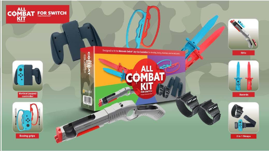 Akční nabídky na váš e-mailAll Combat Kit je druhý z naší nové řady doplňků pro Switch a přináší stejnou zábavu jako All Sports Kit. Díky naší bojové sadě si naplno užijete celou řadu herních žánrů, jako jsou střílečky z pohledu první osoby, bojovky, fitness, sportovní hry a závody.