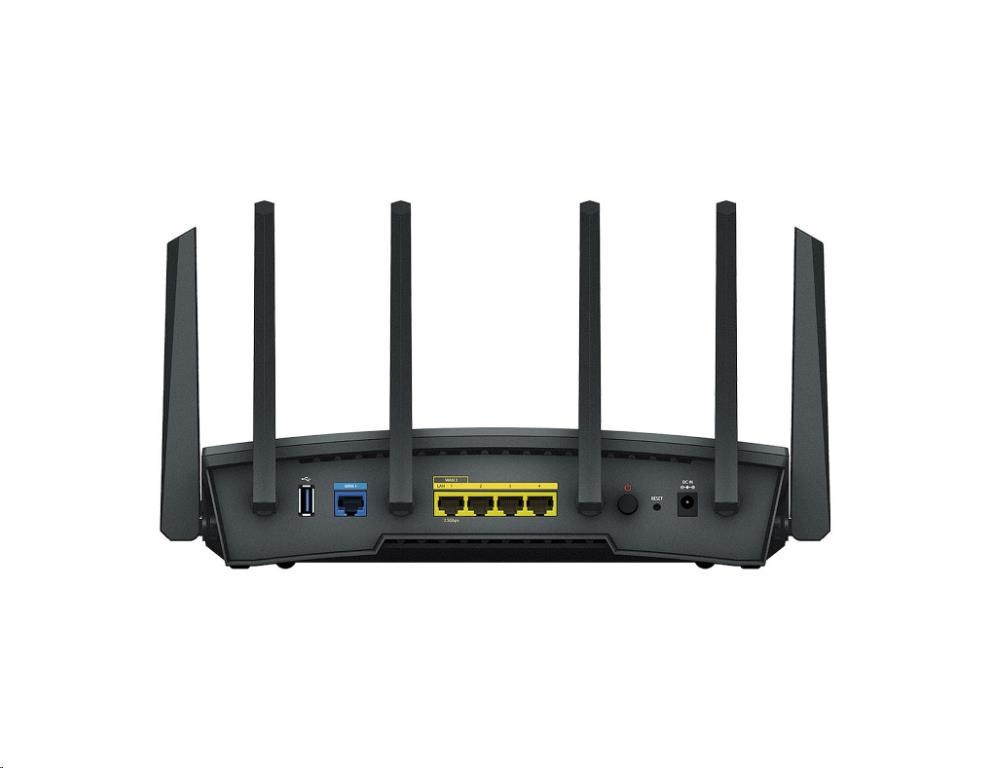 Akční nabídky na váš e-mailTřípásmový směrovač RT6600ax, založený na novém standardu Wi-Fi 6, nabízí přenosovou rychlost až 6,6 Gb/s v kombinovaném bezdrátovém provozu. Jeho tři rádia spolupracují s konfigurovatelným portem 2,5GbE WAN/LAN a zajišťují tak maximální rychlost připojení jednotlivých zařízení. Směrovač RT6600ax, řízený naším neustále se vyvíjejícím operačním systémem Synology Router Manager, je navržen tak, aby zjednodušil zabezpečení a správu sítě.