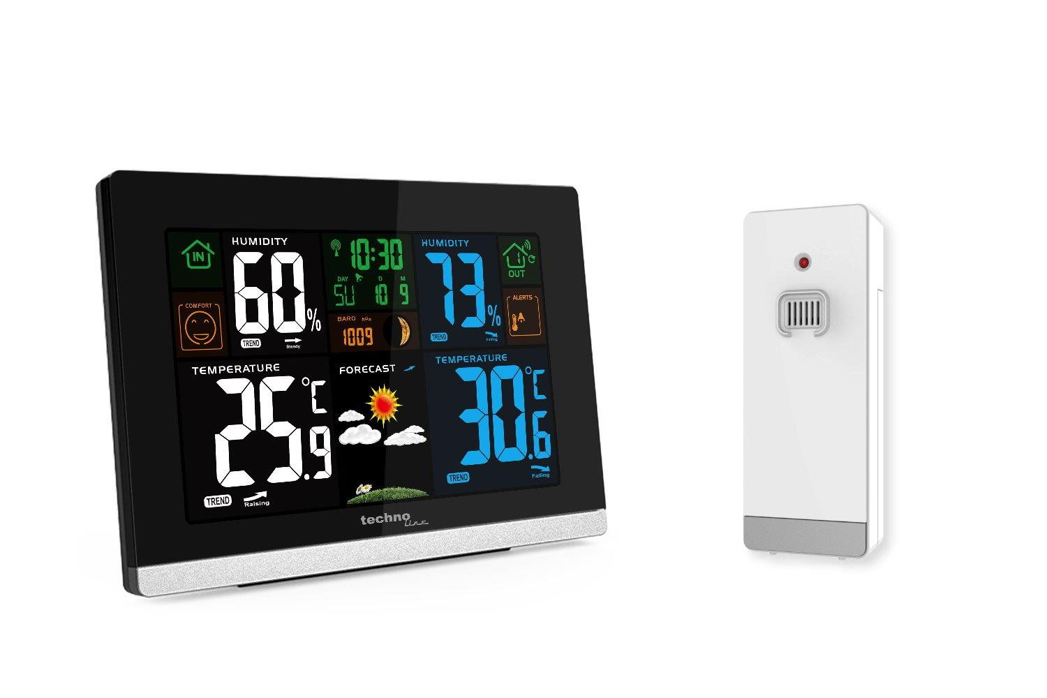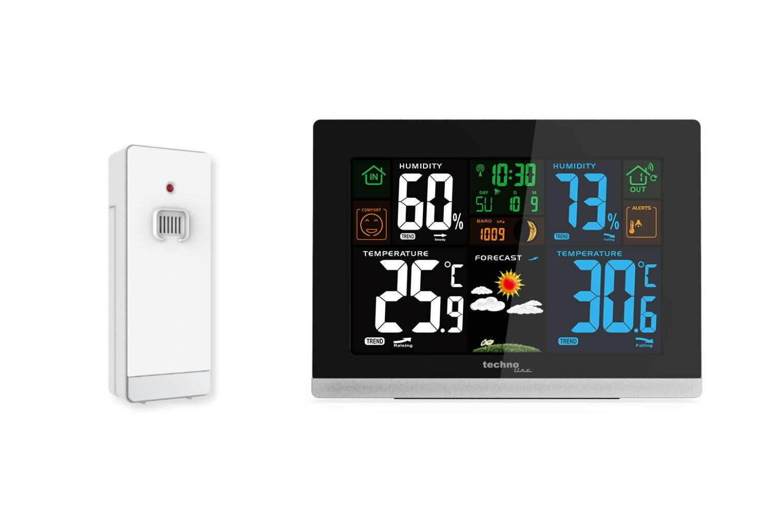 | Napájení | hl. jednotka síťový adaptér 230 -240 V, 50 Hz, 50 mA / 4,5 V, 150 mA (je součástí dodávky, 2 ks baterie typ AA, 1,5V (tužkové, nejsou součástí dodávky) bezdr. čidlo 2 ks baterie typ AA, 1,5V (tužkové, nejsou součástí dodávky) |