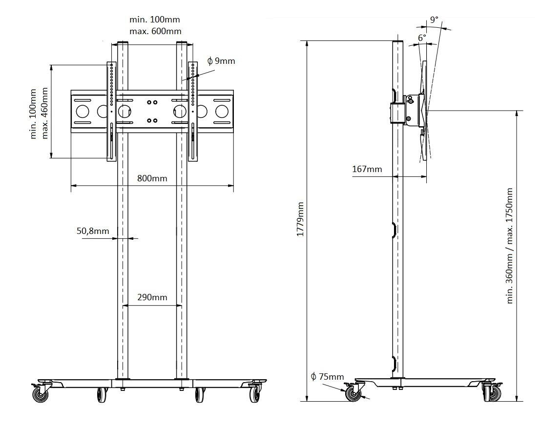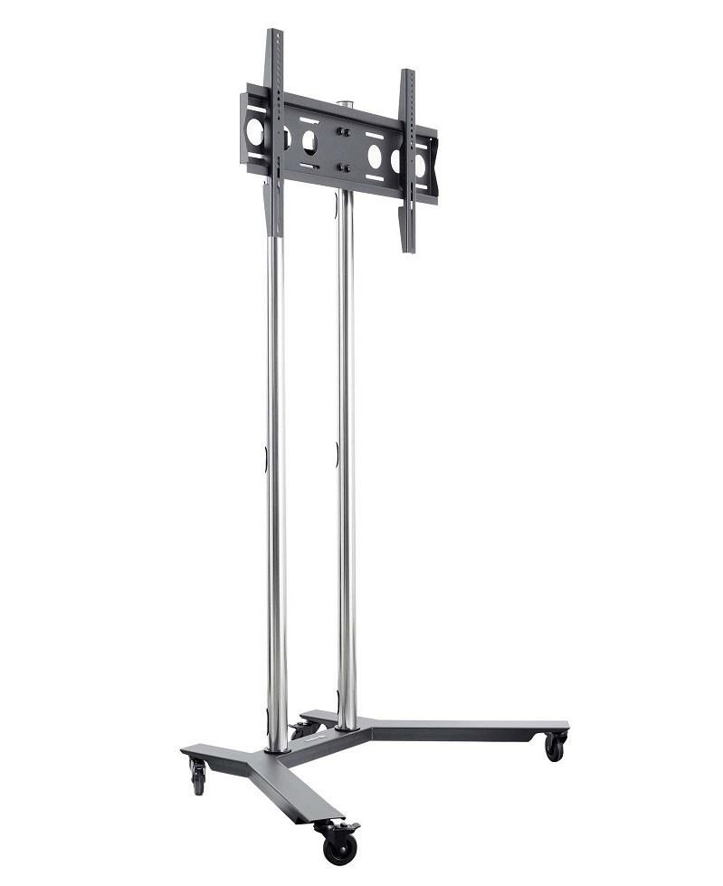 Televizní stojan EDBAK TR1-PWB Mobilní stojan na Tv 43" až 75", nastavení výšky 30-175cm, naklápění +6°/-9°, VESA 100x100 až 600x400, vedení kabeláže, nosnost 80kg Tento profesionální velmi kvalitní televizní stojan je vhodný především na prezentaci pomocí televize nebo monitoru o úhlopříčce 43" až 75". Nastavení Tv stojanu je propracováno do posledního detailu: nastavitelná výška obrazovky, nastavitelný náklon obrazovky, korekce roviny obrazovky (výborné v případě nerovnosti podlahy), systém skrytého vedení kabeláže, pojezdová kolečka s aretací. Stojan je velmi stabilní a bezpečný. V případě potřeby je možné dokoupit police na příslušenství, horní polici na kameru, podstavce místo koleček. Ideální pro videokonference a prezentace pomocí obrazové techniky. Televizní stojan EDBAK TR1-PWB Technické údaje: maximální zatížení 80kg na Tv a monitory 43" až 75" VESA standard 100x100 až 600x400 výška stojanu 180cm nastavitelná výška TV dle potřeby po celé výšce stojanu možnost náklonu TV +6° / -9° rozměry podstavy 1127x694mm (ŠxH) systém skrytého vedení kabeláže pojezdová kolečka s brzdou skvělá stabilita a bezpečnost možnost zakoupení police na příslušenství, police na kameru, přihrádky na katalogy, pevné podstavy profesionální výrobek - nejvyšší kvalita záruka 5 let Stojan na televize a monitory ideální na videokonference a prezentace Edbak TR1-PWB Televizní stojan Edbak TR1-PWB podporuje VESA standardy: VESA 100x100 VESA 200x100 VESA 200x200 VESA 300x200 VESA 300x300 VESA 400x200 VESA 400x300 VESA 400x400 VESA 600x400 maximální rozteč VESA pro uchycení Tv 600x460 Na televizní stojan EDBAK TR1-PWB je možné zavěsit všechny typy, značky a velikosti televizorů, které mají hmotnost do 80kg a které podporují kterýkoliv z výše uvedených VESA standardů. Velikost úhlopříčky televize nebo monitoru není podstatná a nehraje žádnou roli. Skleněná polička na příslušenství ke stojanu Edbak TRS2Horní polička na kameru nebo projektor 250x200mm Edbak CH5 Možnost dokoupení příslušenství: polička na příslušenství (až 3ks na stojan) horní polička na kameru pevné podstavce - výměna za pojezdová kolečka.