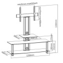 Televizní stolek včetně držáku Tv 37-60", materiál hliník a tvrzené sklo, 2 police 1200x400, horní polička 450x380mm, vedení kabeláže, výška 1180mm, VESA 100x100 až 600x400, nosnost 40kg.Více