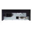 Tiskárna v černém provedení má kompaktní design, je opatřena USB/sériovým portem, interním zdrojem a tichou a rychlou řezačkou papíru.