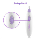 Sada na manikúru a pedikúru, 5 nástavců, dvě nastavitelné rychlosti, výkonný motor, úložné pouzdro, 2× AAA baterie, ergonomický design a nízká váha.Více
