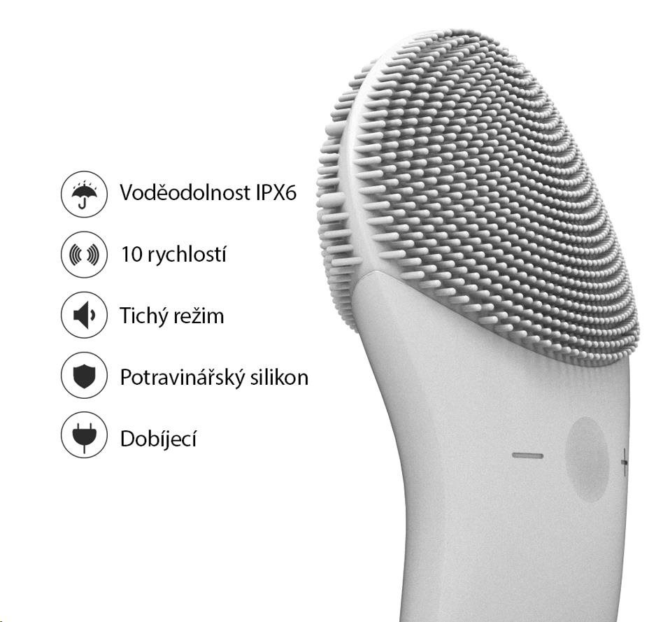 Každodenní čisticí plocha je vybavena jemnými silikonovými dotykovými body, které čistí obličej bez poškození pokožky.