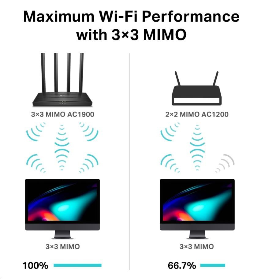 | WiFi Capacity | Medium Dual-Band Allocate devices to different bands for optimal performance 3×3 MU-MIMO Simultaneously communicates with multiple MU-MIMO clients Airtime Fairness Improves network efficiency by limiting excessive occupation |