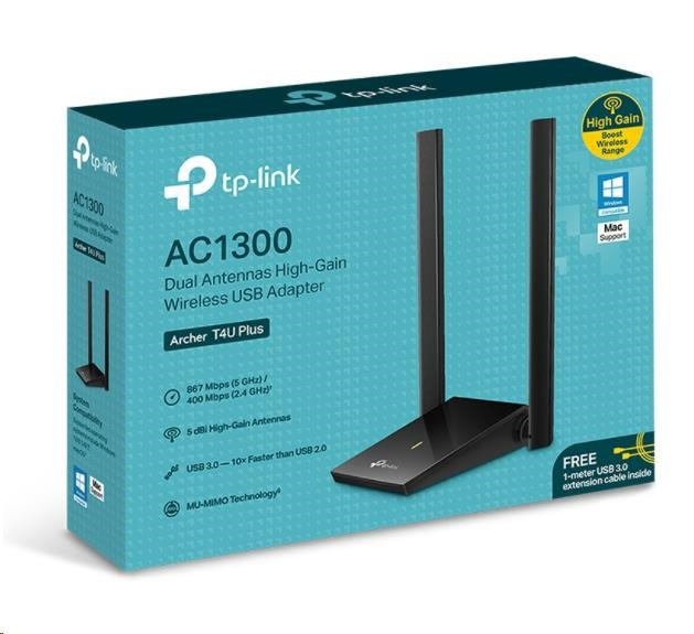 | Package Contents | AC1300 Dual Antennas High-Gain Wireless USB Adapter Archer T4U Plus Quick Installation Guide Resource CD 1-meter USB 3.0 Cable |