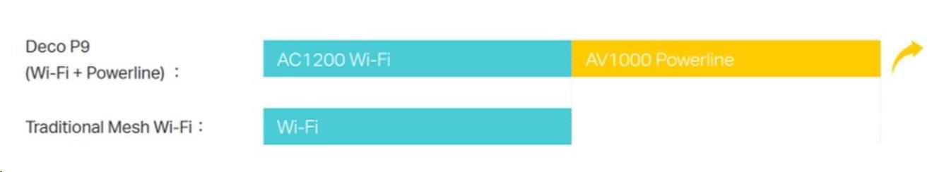 Akční nabídky na váš e-mailDeco P9 kombinuje duální Wi-Fi a powerline pro vytvoření silnější mesh sítě. Technologie Powerline využívá elektrické rozvody vašeho domu k vytvoření silnějšího propojení mezi jednotkami Deco tím, že snižuje dopad stěn a jiných překážek na signál a poskytuje ještě vyšší rychlosti sítě a skutečně bezproblémové pokrytí.