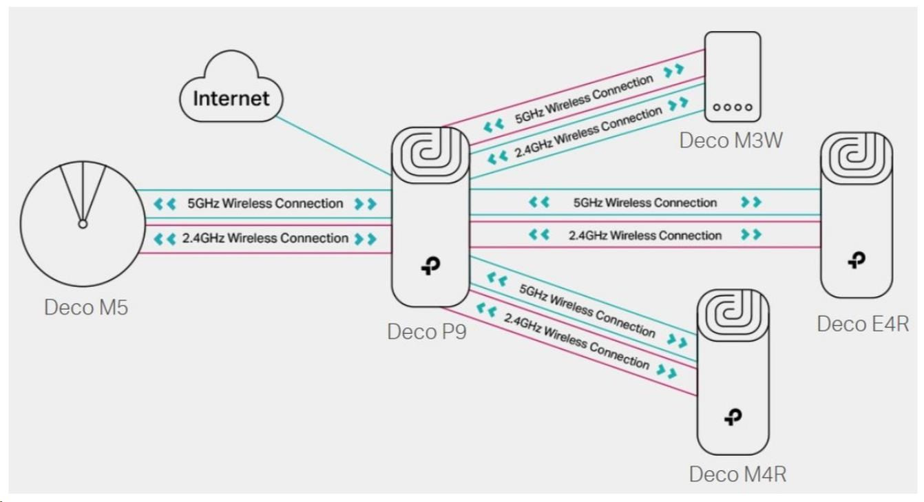| Package Contents | Deco P9 (3-pack) 3 Deco P9 Units 1 RJ45 Ethernet Cable 3 Power Adapters 1 Quick Installation Guide Deco P9 (2-pack) 2 Deco P9 Units 1 RJ45 Ethernet Cable 2 Power Adapters 1 Quick Installation Guide Deco P9 (1-pack) 1 Deco P9 Unit 1 RJ45 Ethernet Cable 1 Power Adapter 1 Quick Installation Guide |