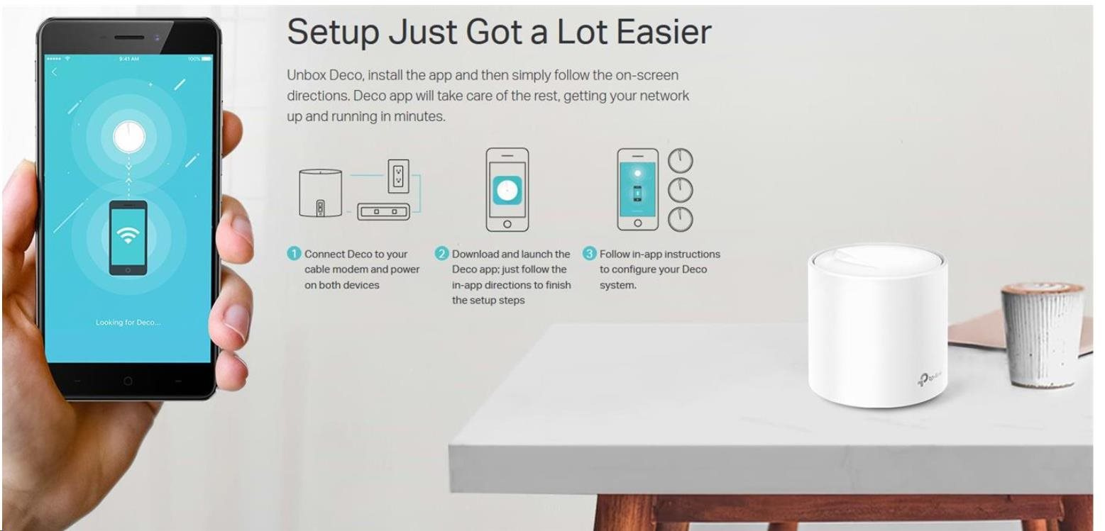 | Package Contents | Deco X20 (3-pack) 3 Deco X20 Units 1 RJ45 Ethernet Cable 3 Power Adapters 1 Quick Installation Guide Deco X20 (2-pack) 2 Deco X20 Units 1 RJ45 Ethernet Cable 2 Power Adapters 1 Quick Installation Guide Deco X20 (1-pack) 1 Deco X20 Unit 1 RJ45 Ethernet Cable 1 Power Adapter 1 Quick Installation Guide |