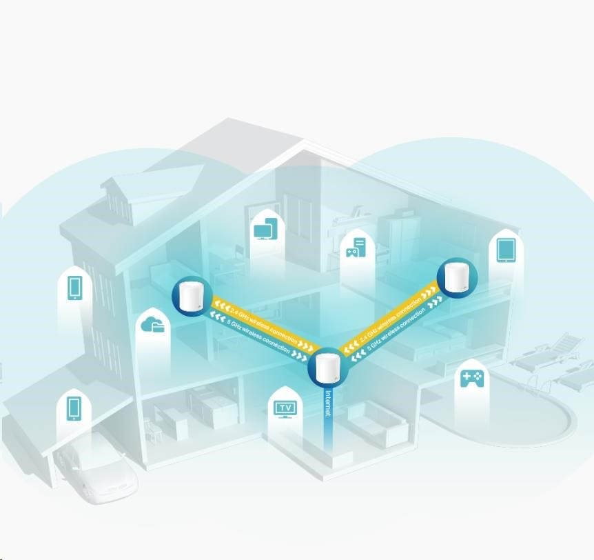 | WiFi Range | 4-7+ Bedroom Houses (3-pack) TP-Link Mesh Technology Optional Ethernet backhaul work together to link Deco units to provide seamless coverage 4× Antennas (Internal) Multiple antennas form a signal-boosting array to cover more directions and large areas Beamforming Concentrates wireless signal strength towards clients to expand WiFi range |