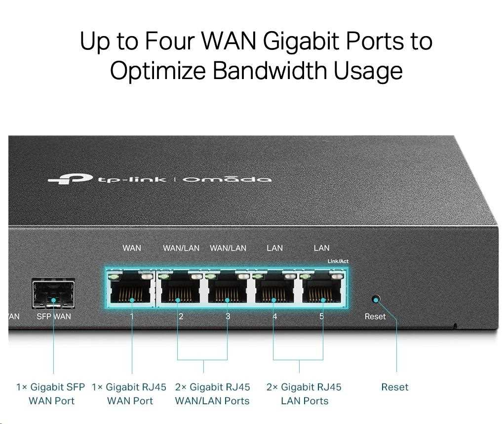 | Interface | • 1 Gigabit SFP WAN/LAN Port • 1 Gigabit WAN Port • 4 Gigabit LAN/WAN Ports • 1 USB 3.0 Port (supports USB LTE dongle and USB storage) |