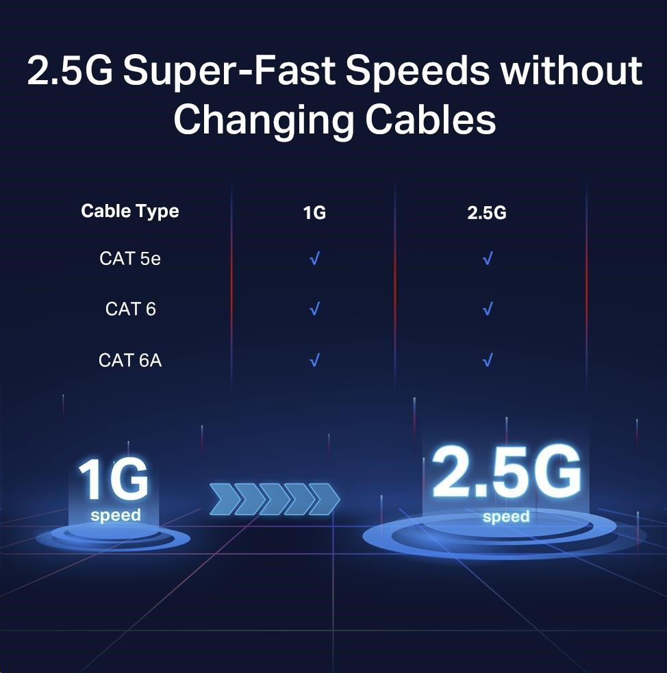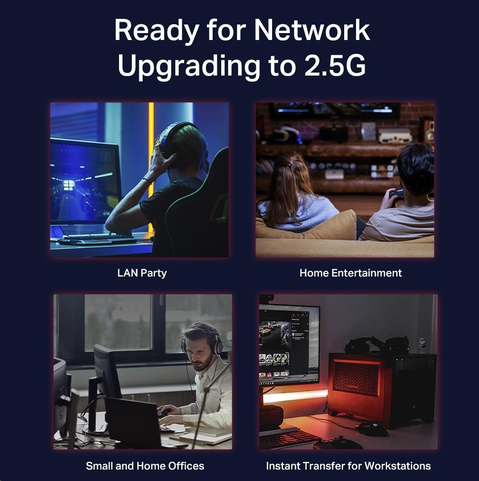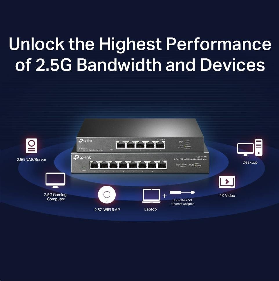 | Interface | 8× 100Mbps/1Gbps/2.5Gbp Ports, Auto-Negotiation, Auto-MDI/MDIX |
