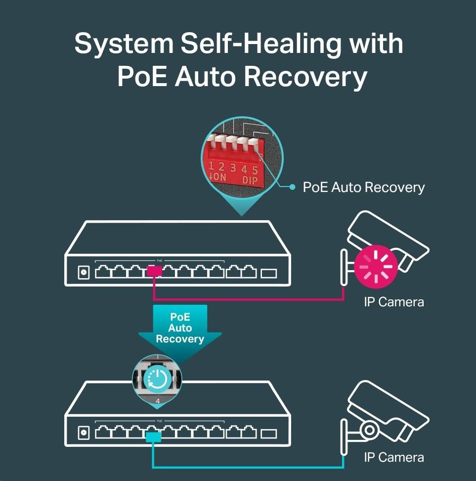 | Advanced Functions | • Compatible With IEEE 802.3af/at Compliant PDs • Extend Mode Button (Ports 1–4, Up to 250 m PoE power supply and data transmission) • Priority Mode Button (Ports 1–2) • Isolation Mode Button (Ports 1–4 / 5-8) • PoE Auto Recovery (Ports 1-8) • Mac Address Auto-Learning and Auto-Aging • IEEE802.3x Flow Control For Full-Duplex Mode And Backpressure for Half-Duplex Mode |