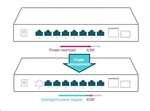 | PoE Ports (RJ45) | Standard: 802.3at/802.3af compliant PoE Ports: Port1- Port 8 PoE Power Budget: 63W |