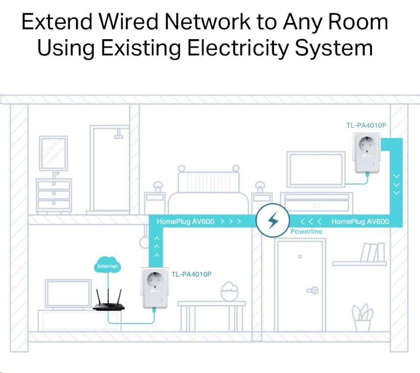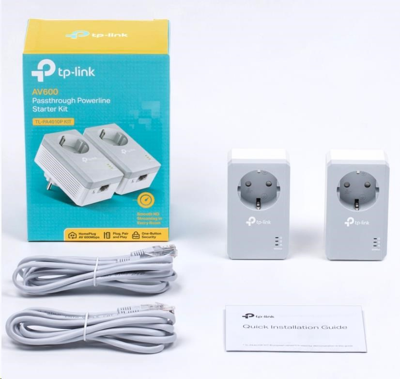 Akční nabídky na váš e-mailTL-PA4010P KIT, který využívá pokročilou technologii Home Plug AV, poskytuje stabilní a vysokorychlostní přenos dat až do rychlosti 600 Mb/s* pro dosah až do vzdálenosti 300 metrů od místa, kde je umístěná síťová zásuvka. Žádné rušení na elektrických nebo elektronických zařízeních. Streamujte v HD, hrajte online a stahujte velké soubory bez přerušení díky spolehlivým napájecím linkám.