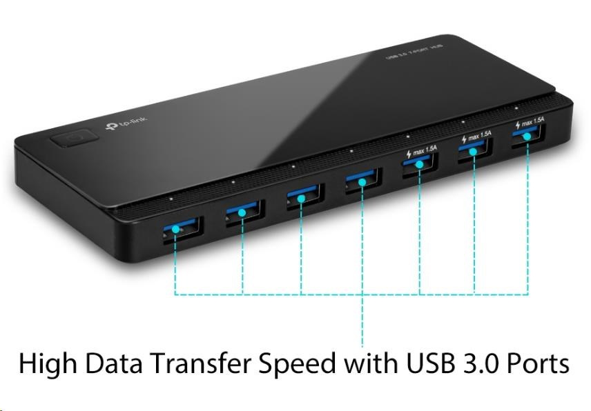 Akční nabídky na váš e-mailUSB rozbočovač UH700 je skvělou volbou pro rozšíření USB portů počítače pro přenos dat, když potřebujete současně připojit USB disk, USB myš, tiskárnu nebo jiná zařízení. Port USB 3.0 umožňuje přenosovou rychlost až 5 Gbit/s, 10 rychlejší než USB 2.0.