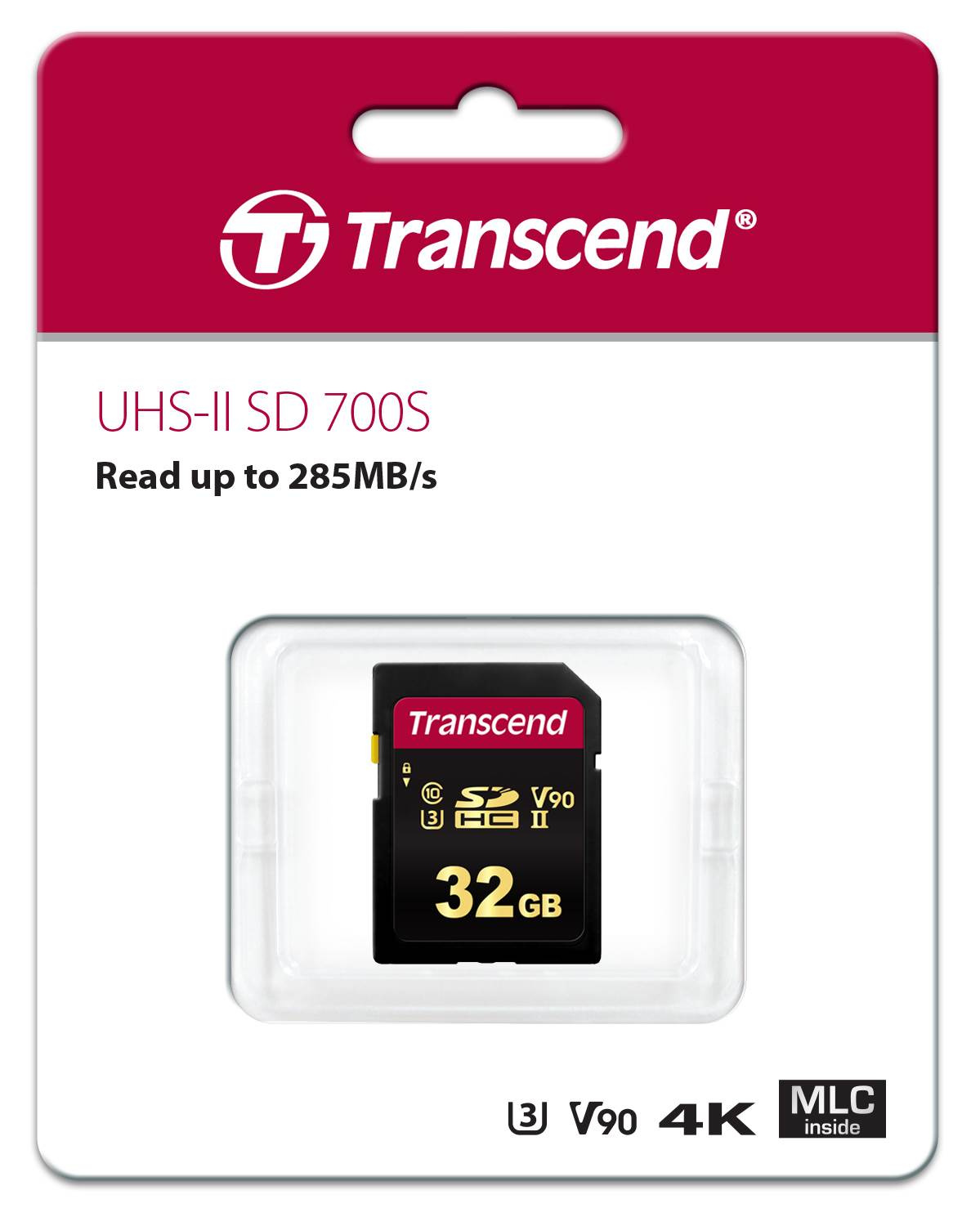Transcend's SDXC/SDHC 700S memory cards meet both the UHS-II Speed Class 3 (U3) and the UHS Video Speed Class 90 (V90) standards for 4K Ultra HD video recordings, with read/write speeds of up to 285MB/s and 180MB/s respectively.