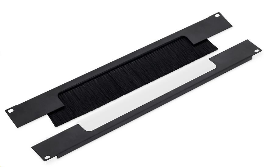 19" průchozí panel 2U rozdělený horizontálně, kartáč, otvor 330 x 55 mm.