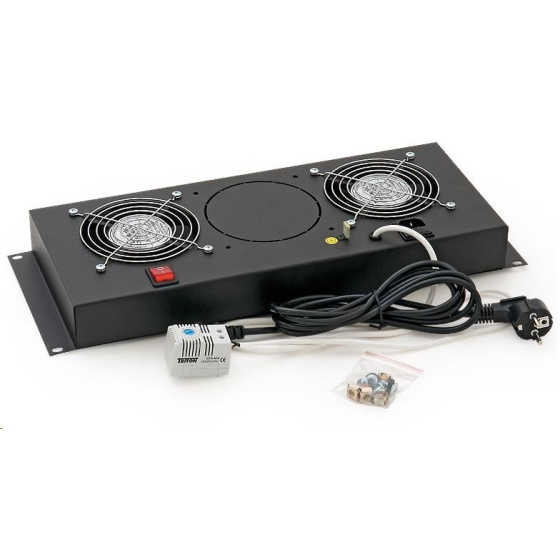 19" ventilační jednotka vertikální, 2 vent., 4U, 230V/30W, termostat, šedá.