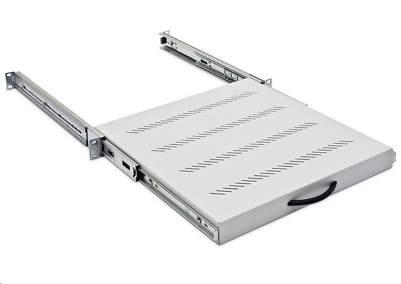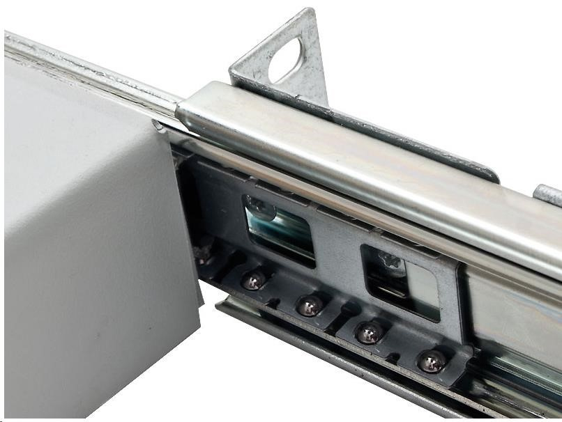19“ plně výsuvná police - výška 45 mm Příbal Šroub M6 x 10 ........................................ 8x Plastová podložka .................................. 8x Plovoucí matice M6 ................................ 8x