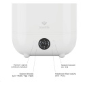 Obsluha zvlhčovače je velmi snadná a zvládne jí každý. K ovládání slouží 4 dotyková tlačítka, kterými zvlhčovač zapnete, vypnete, nastavíte intenzitu páry, noční režim nebo stupeň vlhkosti. Po otevření horního poklopu naplníte nádržku vodou, zvlhčovač zapojíte do zdroje energie a tlačítkem nastavíte množství páry, které vám vyhovuje. Můžete přidat i esenciální olej pro příjemné provonění místnosti. Zvlhčovač sám sleduje množství vody k nádržce, při nízké hladině se automaticky vypne. Aktuální vlhkost a teplotu v okolí zvlhčovače, intenzitu páry a případně nastavený časovač kontrolujete na displeji zvlhčovače. Horní plnění zvlhčovače je velkou výhodou, nemusíte ho pokaždé nosit ke zdroji vody a nikde nic nerozléváte.
