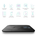 Osobní diagnostická bluetooth váha, měření pomocí bioelektrické impedanční analýzy, 19 měřitelných indexů těla, barevný LCD displej, až 8 uživatelů, párování váhy s mobilní aplikací pomocí bluetooth, kompatibilita s iOS a Android, synchronizace s aplikacemi Apple HealthKit, Google Fit, Fitbit, nosnost až 180 kg, maximální odchýlení 0,1 kg, materiál desky tvrzené ITO sklo, černá barva, napájení pomocí AAA baterií.Více