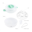 Součástí balení je odměrka pro přesné odměření vody a kleštičky na savičky pro hygienické vyjmutí předmětů.