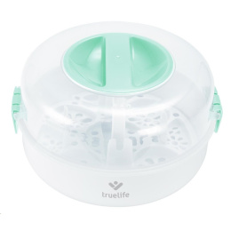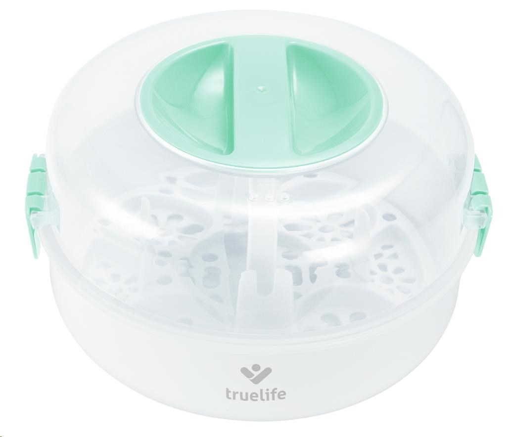 Ochrana imunitního systému vašeho dítěte pro vás nemusí znamenat neustálé vyvařování lahviček a dudlíků. Se sterilizátorem do mikrovlnné trouby TrueLife Invio MS5 sterilizujete dětské lahvičky, kousátka a další předměty během dvou minut. K tomu potřebujete jen obyčejnou vodu a mikrovlnou troubu. Sterilizátor využívá nemocniční metodu parní sterilizace, která je rychlá, účinná a bez chemických látek. Ničí tak 99,9 % bakterií a mikrobů, které se na dětských předmětech nacházejí, aniž by poškodil jejich povrch. Sterilizátor je navržen pro většinu mikrovlnných trub na trhu a zvládne většinu typů kojeneckých lahví. Pojme až 5 lahviček naráz a snadno se ovládá. Díky kompaktním rozměrům s ním můžete bez problému cestovat.