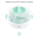 Díky teplotě páry 100 °C sterilizátor efektivně ničí 99,9 % bakterií a mikrobů.
