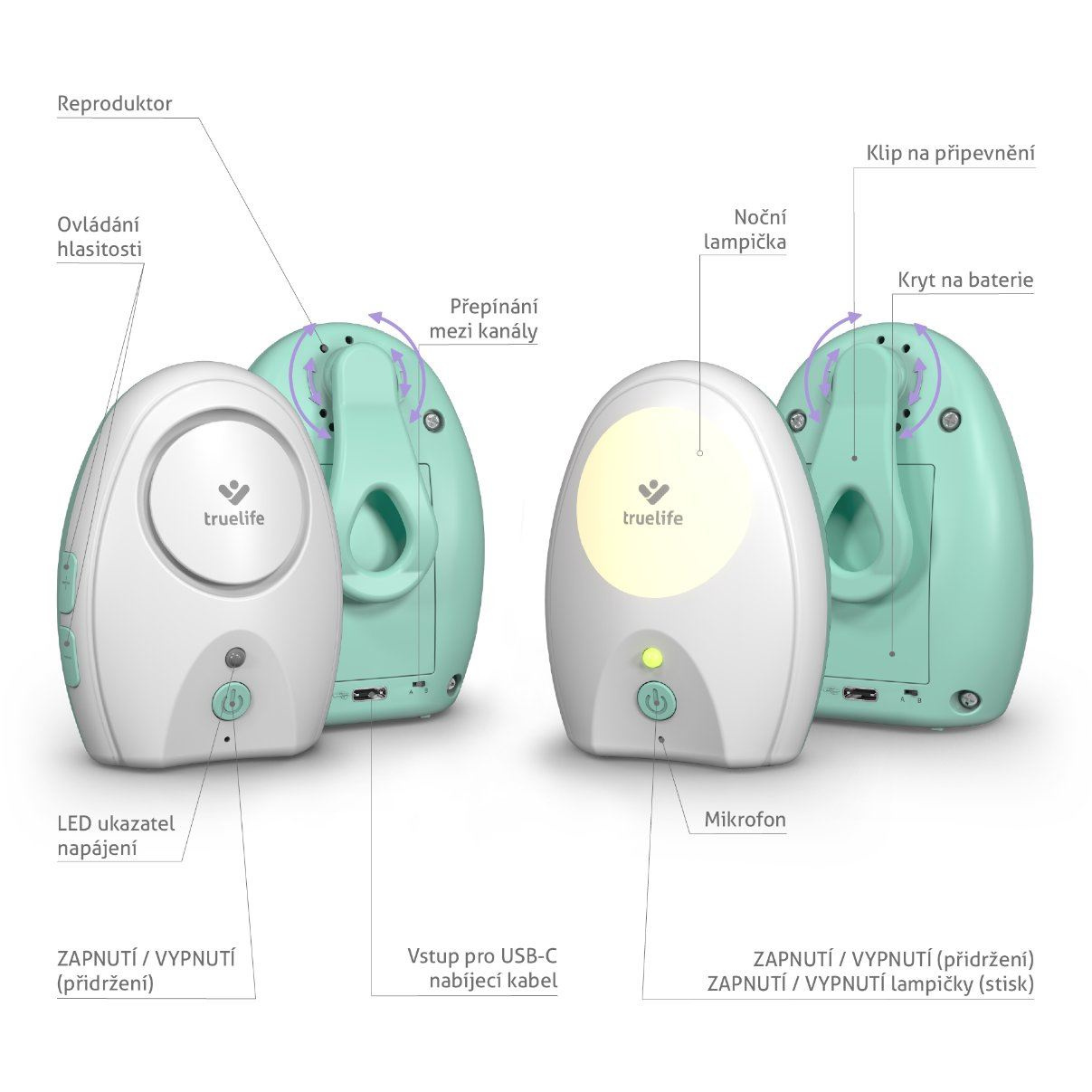 Chcete mít své miminko pod dohledem a reagovat na jeho potřeby, i když zrovna spinká v jiné místnosti? Digitální audio chůvička TrueLife NannyTone VM Pocket se spolehlivým přenosem a praktickými funkcemi pohlídá miminko za vás. Obě jednotky jsou dobíjecí, takže se stanou vaším pomocníkem nejenom v domácnosti, ale i na cestách. Pomocí USB-C pak snadno chůvičku dobijete ať už ze zásuvky nebo pomocí powerbanky. Díky spolehlivému přenosu signálu s dosahem až 700 metrů máte své dítě vždy pod dohledem a neunikne vám jediné škytnutí.