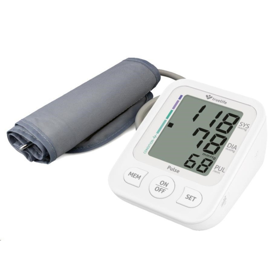 Tlakoměr Truelife Pulse využívá oscilometrickou metodu měření tlaku a funguje na principu nafouknutí manžety, která zajišťuje maximální přesnost naměřených hodnot. Navíc jeho ovládání je velmi jednoduché a vše podstatné zvládnete stiskem tlačítka START/STOP. Naměřené hodnoty zobrazuje velký a dobře čitelný třířádkový displej.