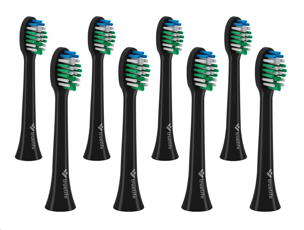 Náhradní hlavice TrueLife SonicBrush Compact Heads Black Standard 8 Pack jsou speciálně vyvinuty pro precizní čištění zubů. Sada osmi náhradních hlavic je kompatibilní s TrueLife SonicBrush Compact / Duo.