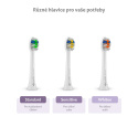 Součástí balení jsou 3 náhradní hlavice Compact různých typů – Standard pro běžné čištění, Sensitive pro citlivější zuby a Whiten pro bělící efekt.
